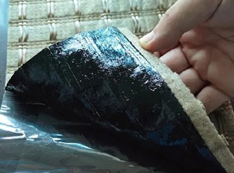(3) 在-5℃施工時,傳統的防裂布由于噴灑出的熱粘層油迅速冷卻,失去黏附性能,無法與路面粘結。自粘式應力布耐低溫,可以在-5℃時進行正常施工,依然保持良好的黏附性,與路面有效的粘結,解決了現有的防裂布季節性施工難題;